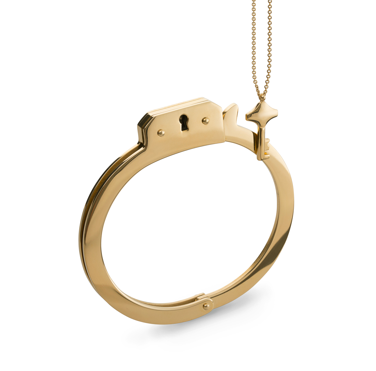 Złota bransoleta bangle z ćwiekami – packshot biżuterii na białym tle